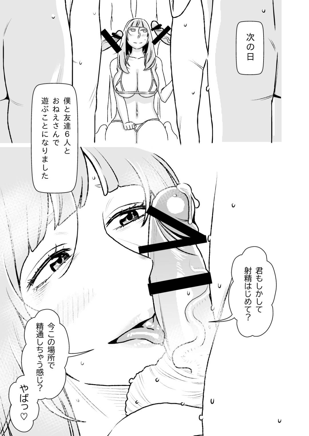 【エロ漫画】雨の日に友達のお姉ちゃんと一緒にお風呂に入ったら当然のように手コキしてもらい筆おろしおねショタセックスしちゃった!(2128views)